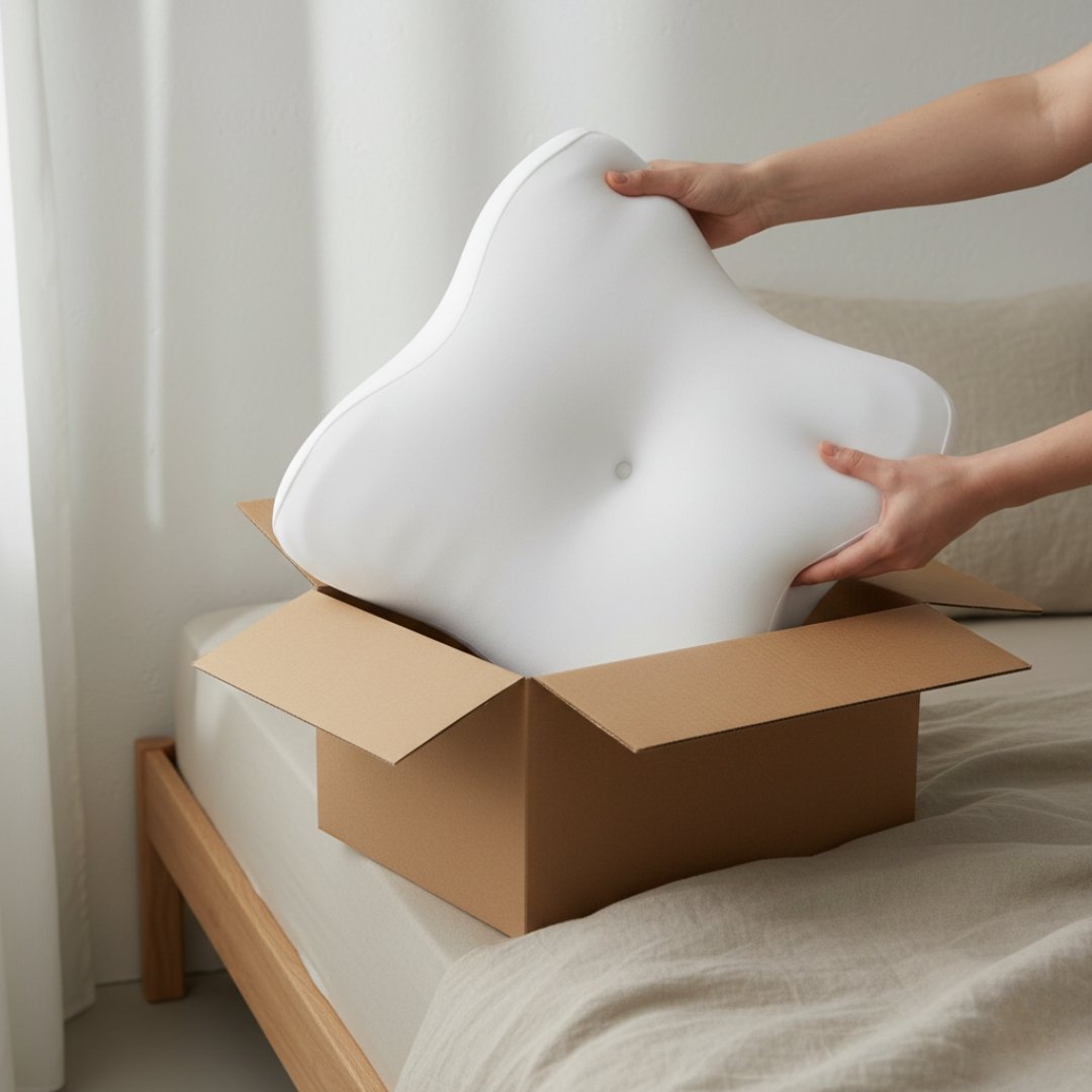 Sortez l’Oreiller Soya 3.0 de son emballage. La mousse reprend doucement sa forme optimale.